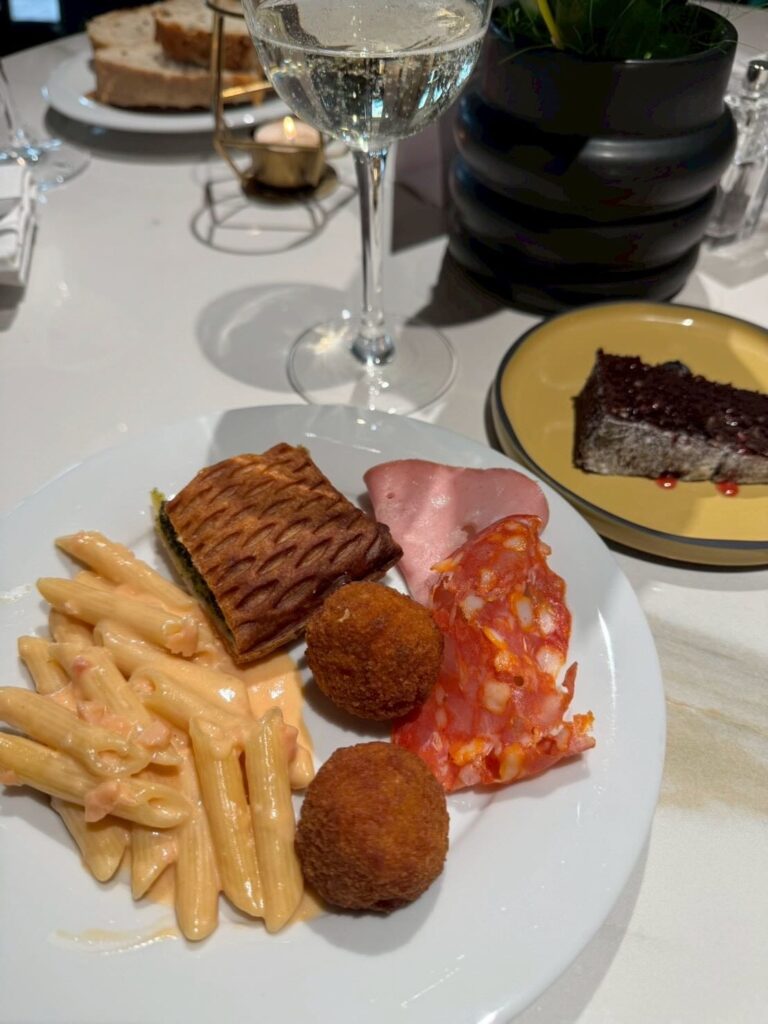 ハッピーアワーはラウンジではなく朝食会場なのでした。アムステルダムでは一度もハッピーアワーへ伺えなかったのでサンシーロでは観光は早めに切り上げてホテルでゆっくりです。