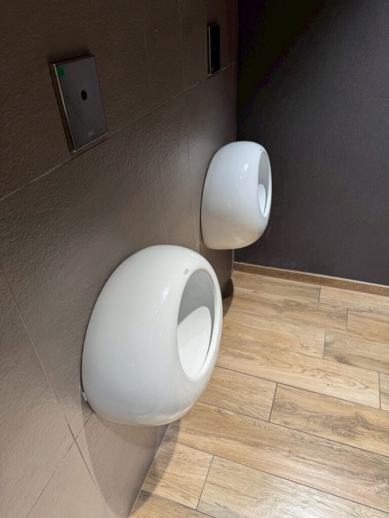 ・ホテルのロビーにあったトイレです。部屋を出て観光に行こうと。その前にロビーにあったトイレに寄りました。男性の方、難しいの分かりますか?受けが無いんです。