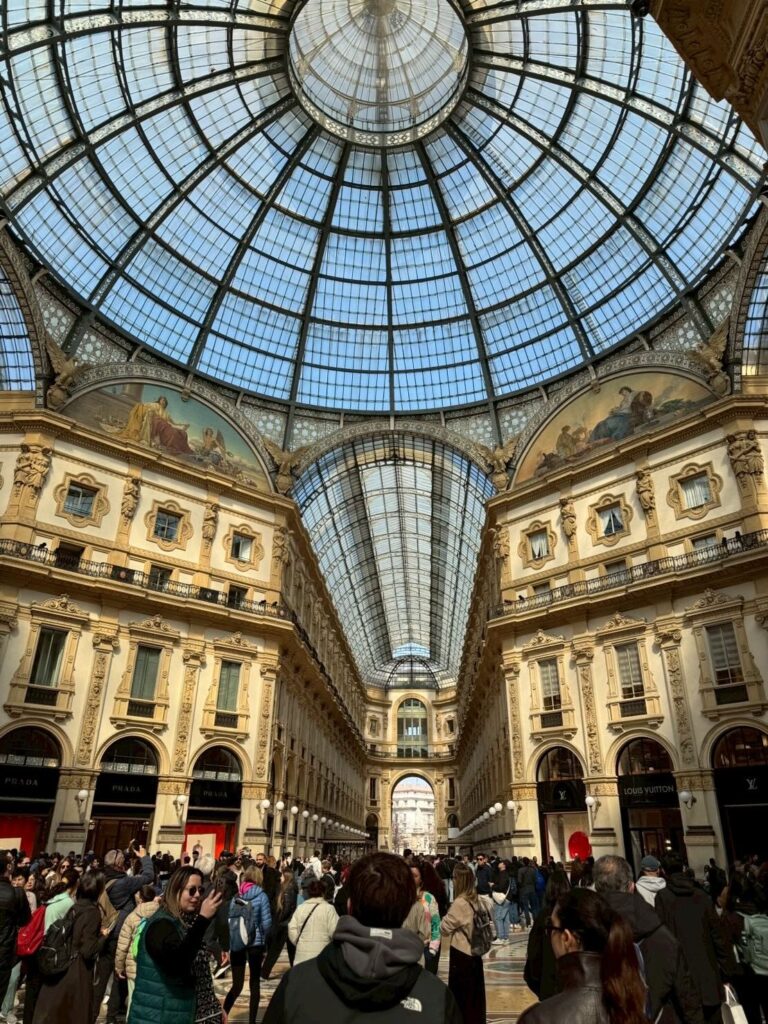 ガッレリア ミラノは高級ブランド街でPRADA(本店)、GUCCI、Louis Vuitton などウィンドウショッピングが好きな方には楽しいエリアです。滞在するというよりは写真+雰囲気を楽しむ場所としては最高ですね。