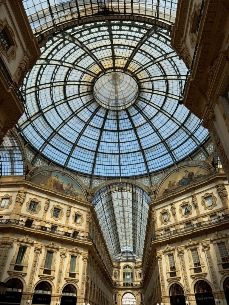 ガッレリア ミラノの中央のドームは最大の見どころ。360度ガラス張りで光の入り方が美しく写真スポットとして人気です。